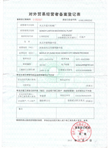 河南藍(lán)天機(jī)械制造有限公司2005年已被批準(zhǔn)為中國(guó)進(jìn)出口自主權(quán)企業(yè),歐盟CE認(rèn)證企業(yè),ISO國(guó)際質(zhì)量認(rèn)證企業(yè),德國(guó)TUV安全認(rèn)證,法國(guó)國(guó)際檢測(cè)局BV質(zhì)量認(rèn)證等,2006-2008年被評(píng)為鄭州市誠(chéng)信民營(yíng)企業(yè),鄭州市專(zhuān)利示范企業(yè),2013-2015年被評(píng)為市、鎮(zhèn)出口創(chuàng)匯先進(jìn)企業(yè),十佳經(jīng)營(yíng)者企業(yè)。目前已獲得國(guó)家專(zhuān)利十一項(xiàng),實(shí)用新型專(zhuān)利八項(xiàng),外觀專(zhuān)利三項(xiàng)。主打產(chǎn)品暢銷(xiāo)國(guó)內(nèi),并出口至中東、亞洲、非洲、北美洲、南美洲、大洋洲的幾十個(gè)國(guó)家和地區(qū)。