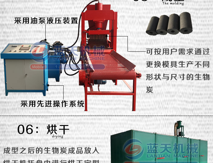 藍(lán)天機(jī)械生產(chǎn)的生物炭成型機(jī)主要用于成型生物質(zhì)廢料炭化之后的物料,通過更換模具可實(shí)現(xiàn)一機(jī)多用,滿足用戶的不同需求。液壓生物炭成型機(jī)采用PLC全程智能控制,并配備數(shù)據(jù)輸出裝置,實(shí)現(xiàn)智能無人操作。藍(lán)天機(jī)械是河南地區(qū)專業(yè)生物炭成型機(jī)廠家,咨詢更多相關(guān)可撥打官網(wǎng)熱線。