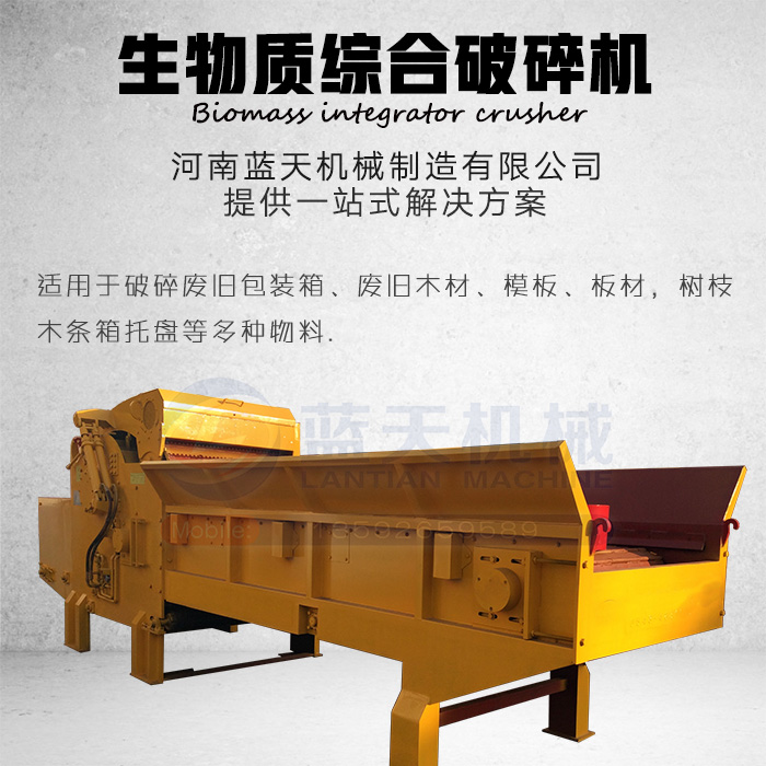 生物質綜合破碎機是河南藍天機械制造有限公司在模板破碎機本身設備的基礎上升級而成的設備。該設備集合了模板破碎機的優(yōu)點拋棄了模板破碎機不能破碎大塊物料的缺點而研發(fā)的設備。生物質綜合破碎機適合破碎廢舊包裝箱,模板,板材,樹枝,木條箱,托盤等多種物料。【使用范圍】:生物質綜合破碎機可加工帶釘子木材、木托盤、工地廢舊模板、木托架、廢舊家具、樹墩、樹樁、木頭、模板廢料、房屋拆遷廢料、廢舊門窗、家具等物料,不限進料尺寸進行破碎?捎糜谏镔|發(fā)電廠、做燃料、燒火、生產(chǎn)鋸末前置工序等專業(yè)的粗破設備。