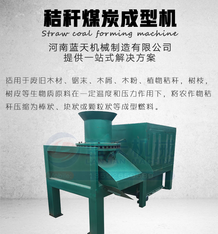 秸稈煤炭成型機是利用植物秸稈,樹枝,樹皮等生物質(zhì)原料在一定溫度和壓力作用下,將農(nóng)作物秸稈壓縮為棒狀、塊狀或顆粒狀等成型燃料,從而提高運輸和貯存能力,改善秸稈燃燒性能,提高利用效率,擴大應(yīng)用范圍。秸稈煤炭成型機主要用于把較松散的農(nóng)作物秸稈在壓力、溫度、粒度、含水率適宜的條件下成型為棒狀或塊狀,以提高燃料的燃燒性能。經(jīng)秸稈煤炭成型機生產(chǎn)出來的生物質(zhì)燃料塊是一種新型的可再生環(huán)保型燃料,具有清潔、高熱值、高燃燒效率等特點,可做燃爐、鍋爐、發(fā)電爐的燃料,在部分領(lǐng)域完全可以做為煤的替代品,成型后的生物質(zhì)燃料塊也可以經(jīng)炭化后制成炭,以滿足生產(chǎn)和生活對高品位能源的需求。