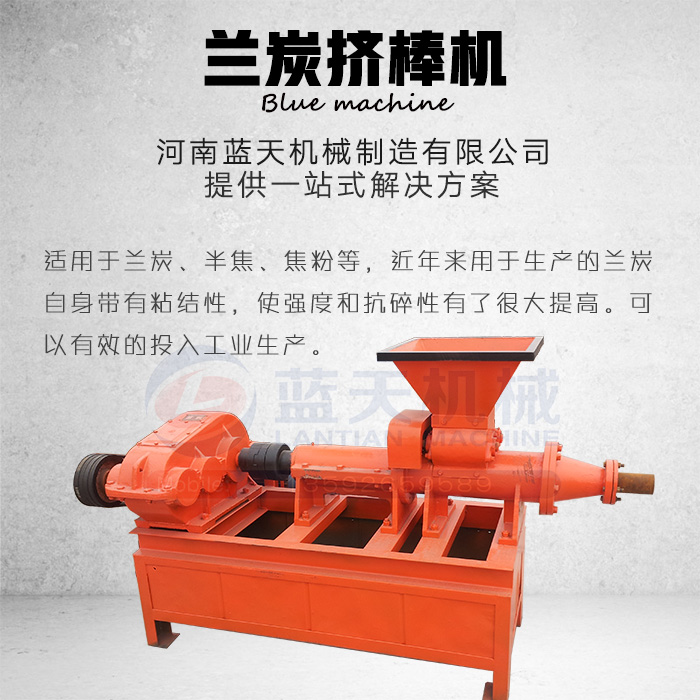4、成型:將攪拌均勻并漚制好的蘭炭送入蘭炭擠棒機中擠壓成型