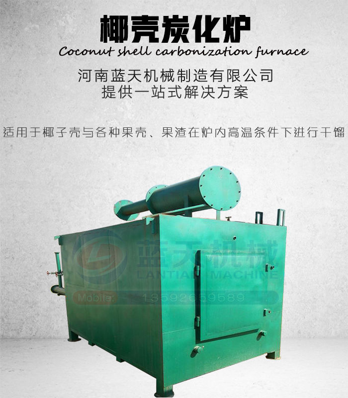 河南藍天機械制造有限公司生產的椰殼炭化爐主要用來將椰殼、棕櫚殼、竹子、木屑、稻殼、花生殼、植物秸稈、樹皮等生物質與農作物含碳具有木炭纖維的物料(體積在15mm以下顆粒狀)在爐內高溫條件下進行干餾、無氧炭化并且炭化率高的理想設備。